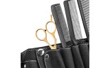 Kabura na akcesoria fryjerskie, wykonana z eko skóry. Posiada wiele poręcznych kieszonek i przegródek na niezbedne akcesoria fryzjerskie. Regulowana na pasku, kolor czarny.