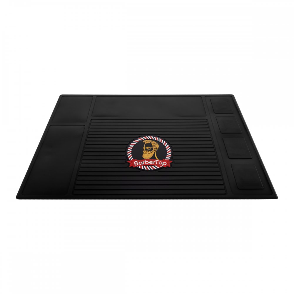 Antypoślizgowa i ochronna mata na akcesoria fryzjerskie. Wysokiej jakości, wykonana z grubej gumy. Ogranicza możliwość powstawania zarysowań na akcesoriach oraz blacie, wyposażona w mocne magnesy utrzymujące maszynki i akcesoria w wyznaczonym miejscu. Łatwa w myciu pod bieżącą wodą.