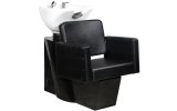 Profesjonalna myjnia fryzjerska -stabilna, niezwykle wygodna, solidnie wykonana. Nowoczeny design czyni z niej piękne dopełnienie wyposażenia nowoczesnego salonu fryzjerskiego. Siedzisko wykonane z wysokiej jakości ekoskóry, z ciekawym przeszyciem bocznym. Silikonowa podkładka pod głowę stabilizuje głowę klienta i pozwala na jej wygodne ułożenie na myjce. Misa myki w kolorze białym, z możliwością regulacji swojego nachylenia. Myjnia w kolorze czarnym.