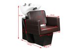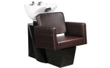 Profesjonalna myjnia fryzjerska -stabilna, niezwykle wygodna, solidnie wykonana. Nowoczeny design czyni z niej piękne dopełnienie wyposażenia nowoczesnego salonu fryzjerskiego. Siedzisko wykonane z wysokiej jakości ekoskóry, z ciekawym przeszyciem bocznym. Silikonowa podkładka pod głowę stabilizuje głowę klienta i pozwala na jej wygodne ułożenie na myjce. Misa myki w kolorze białym, z możliwością regulacji swojego nachylenia. Myjnia w kolorze czarno-brązowym
