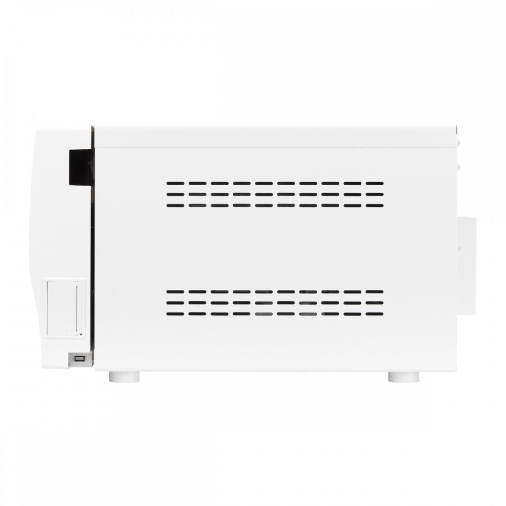Jest to kompaktowe urządzenie łączące autoklaw z wbudowaną drukarką termiczną. Posiada wyświetlacz LCD oraz port USB, który pozwala na podłączenie nośnika danych, aby zapisać wyniki przeprowadzonego cyklu. Posiada 10 całkowicie automatycznych programów; 7 programów sterylizacji, 2 programy testowe i program czyszczenia autoklawu. Dodatkowo posiada również funkcję programu użytkownika, która pozwala na całkowitą swobodę w wyborze parametrów. Menu jest intuicyjne, a przyjazny interfejs jest w języku polskim. Przydatna okaże się również funkcja nagrzewania wstępnego i utrzymywania ciepła. Autoklaw Lafomed Premium Line odznacza się dostępnością szybkich programów sterylizacji, z możliwością sterowania czasem suszenia. Najkrótszy program sterylizacji razem z suszeniem trwa zaledwie 7 minut. Urządzenie posiada wbudowany zbiornik na czystą (destylowaną) wodę, która służy do sterylizacji, a także zbiornik na zużytą wodę, z możliwością odpływu z przodu lub z tyłu urządzenia. System autodiagnozy skutecznie uchroni przez uszkodzeniem i pozwoli zachować trwałość urządzenia. Dodatkowe bezpieczeństwo zapewni system podwójnej blokady drzwi.