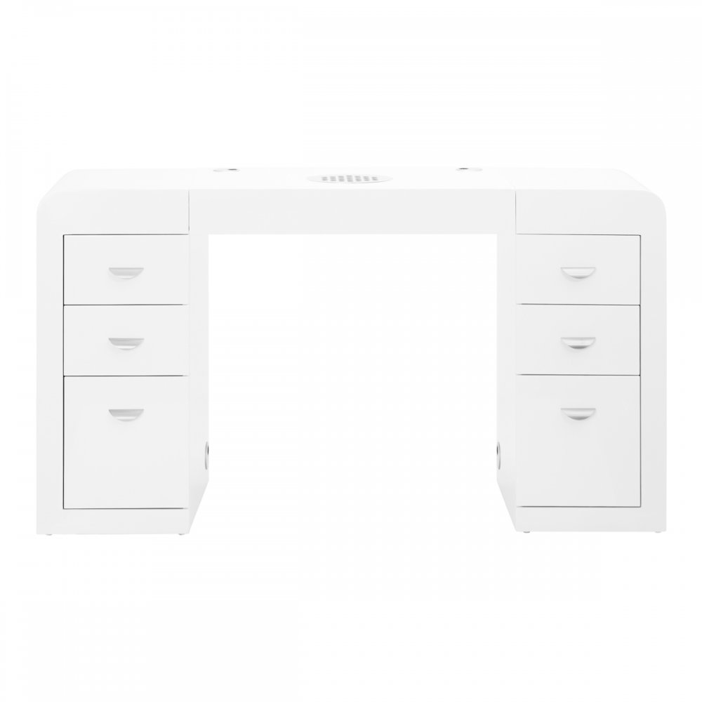 Biurko kosmetyczne z pochłaniaczem - bardzo funkcjonalny mebel do salonów kosmetycznych który łączy w sobie trzy funkcje: biurko, pochłaniacz pyłów i szafka z szufladami. Mebel idealnie komponujący się z wyposażeniem nowocześnie urządzonych pomieszczeń. Mebel został specjalnie zaprojektowany w taki sposób aby maksymalnie ułatwić pracę oraz zmniejszyć problem wystających kabli ( od lampek, frezarek, pochłaniaczy itp. ) :