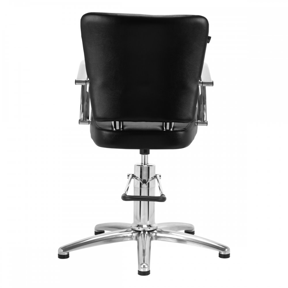 Nowoczesny fotel fryzjerski w kolorze białym. Osadzony na stabilnej, pięcioramiennej podstawie. Siedzisko obite wysokiej jakości ekoskórą. Fotel regulowany góra-dół. Dobrze wyprofilowane siedzisko zapewnia wygodną pozycję klienta podczas zabiegów fryzjerskich.