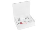 Urządzenie działa na kablu, do zestawu dołączone są 2 kartridże oraz futerał widoczny na zdjęciach. Posiada 5 trybów pracy o różnej częstotliwości nakłuć.