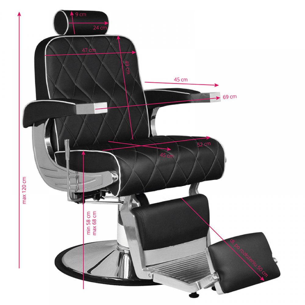 Podążając za tym trendem wprowadziliśmy do oferty nowy produkt -fotel barberski. To nowoczesny, doskonale wykończony mebel, dający klientowi salonu maksymalne uczucie konfortu podczas wykonywanych zabiegów. Poza regulacją góra-dół, fotel posiada odchylane oparcie oraz regulowny podnóżek. Mimo małych gabarytów, mozliwe jest ustawienie klienta w dogodnej, półleżącej pozycji. Wygodne siedzisko pokryte jest wysokiej jakosci ekoskórą. Szeroka, chromowana podstawa gwarantuje stabilność mebla podczas pracy. Dodatkową zaletą jest możliwość łatwej regulacji zagłówka.