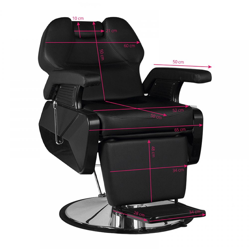 Nowość w naszej ofercie - fotel barberski NEW YORK. To nowoczesny, doskonale wykończony mebel, dający klientowi salonu maksymalne uczucie konfortu podczas wykonywanych zabiegów. Poza regulacją góra-dół, fotel posiada odchylane oparcie oraz regulowny podnóżek. Mimo małych gabarytów, mozliwe jest ustawienie klienta w dogodnej, półleżącej pozycji. Wygodne siedzisko pokryte jest wysokiej jakosci ekoskórą. Szeroka, chromowana podstawa gwarantuje stabilność mebla podczas pracy. Dodatkową zaletą jest możliwość łatwej regulacji zagłówka. Mebel w kolorze czarnym.
