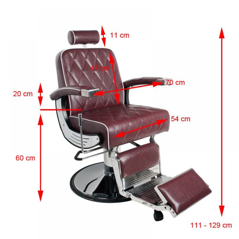 Nowość w naszej ofercie -fotel barberski IMPERIAL. To nowoczesny, doskonale wykończony mebel, dający klientowi salonu maksymalne uczucie konfortu podczas wykonywanych zabiegów. Poza regulacją góra-dół, fotel posiada odchylane oparcie oraz regulowny podnóżek. Mimo małych gabarytów, mozliwe jest ustawienie klienta w dogodnej, półleżącej pozycji. Wygodne siedzisko pokryte jest wysokiej jakosci ekoskórą. Szeroka, chromowana podstawa gwarantuje stabilność mebla podczas pracy. Dodatkową zaletą jest możliwość łatwej regulacji zagłówka. Mebel w kolorze bordo.