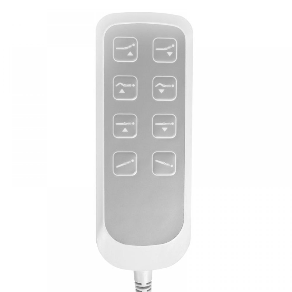 Pełne sterowanie pilotem doskonale ułatwia pracę. Poszycie fotela łatwo zmywalne, wykonane z eko-skóry spełniające rygorystyczne wymogi UE. Fotel dostępny jest w kolorze białym.