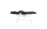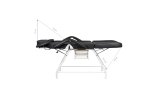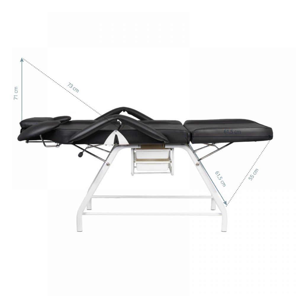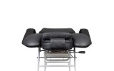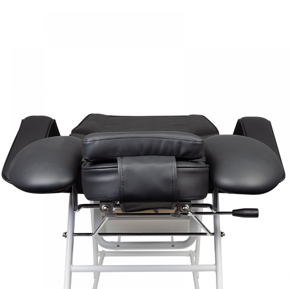 Fotel posiada ręczną regulację podnóżka, oparcia oraz podparcia rąk dla wykonywującego zabieg. Zastosowane podparcie rąk jest niezwykle praktycznym rozwiązaniem nie spotykamym w innych fotelach. Wyposażony w wygodną poduszkę dla klienta oraz podręczne kuwety na umieszczenie niezbędnych akcesoriów.