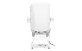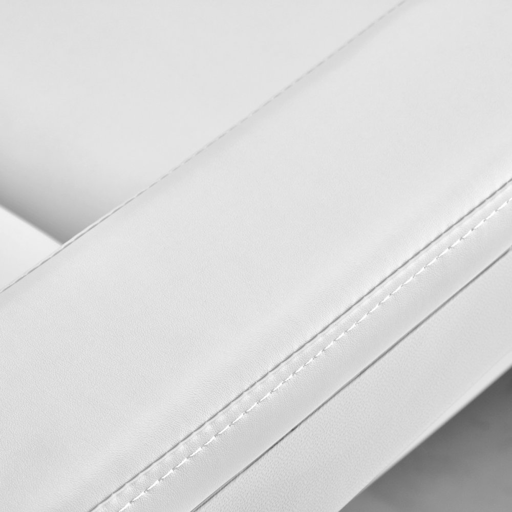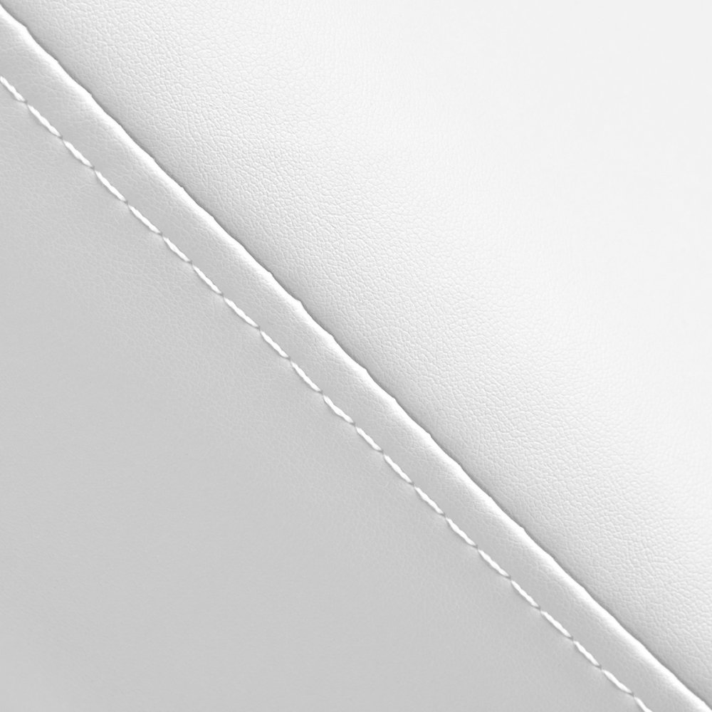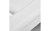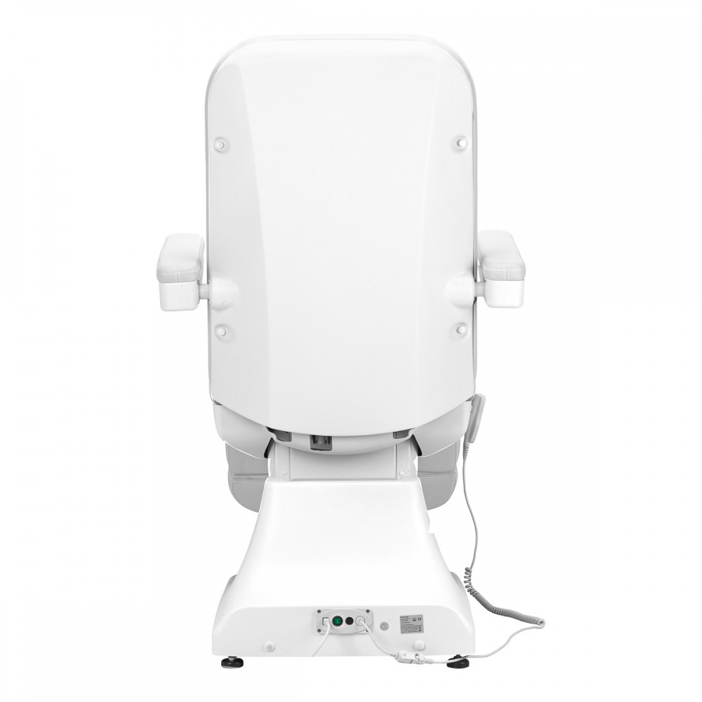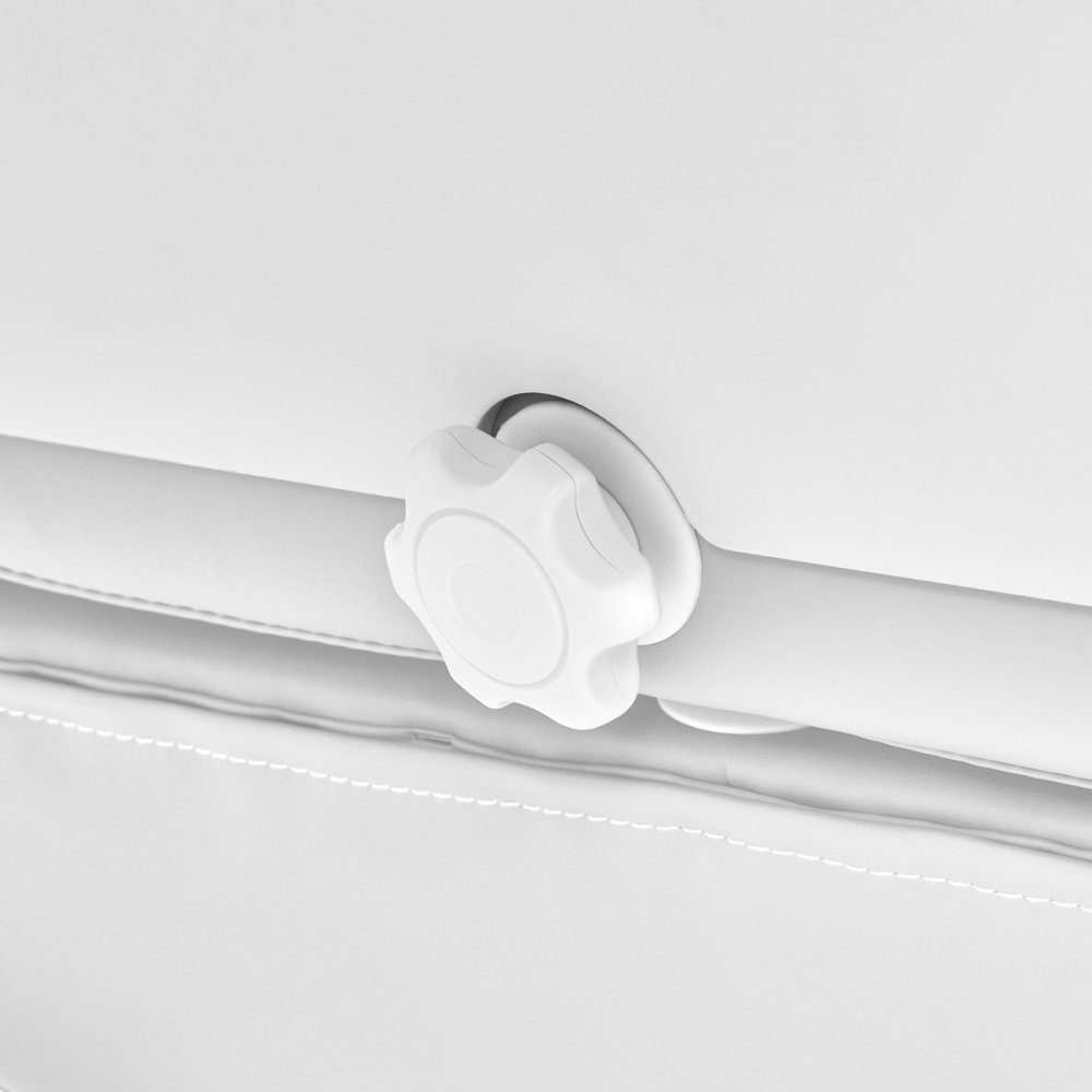 Fotel wypełniony jest pianką o odpowiedniej twardości oraz pokryty przyjemną w dotyku imitacją skóry w odcieniach bieli. Dzięki użyciu materiału, który jest łatwy do utrzymania w czystości oraz odporny na wybrane środki dezynfekcji, sprzęt jest komfortowy w użytkowaniu, wytrzymały na wilgoć oraz nieskomplikowany w czyszczeniu. Solidna podstawa wykonana z trwałego materiału w odcieniach bieli zapewnia stabilność w trakcie zabiegów. Odpowiednio wyprofilowane obszycia nadają fotelowi stylowy wygląd i sprawiają, że siedzisko jest ergonomiczne.