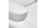 Fotel wypełniony jest wyprofilowaną pianką i pokryty przyjemną w dotyku skórą syntetyczną w odcieniach bieli. Użyty materiał sprawia, że sprzęt jest łatwy w czyszczeniu, a także odporny na wilgoć i wybrane środki dezynfekcji. Solidna podstawa wykonana z trwałego materiału w odcieniach bieli zapewnia stabilność w trakcie zabiegów. Odpowiednio wyprofilowane obszycia nadają fotelowi stylowy wygląd i sprawiają, że siedzisko jest ergonomiczne. Minimalistyczny, prosty design i klasyczna kolorystyka pozwalają mu wpasować się w każde wnętrze.