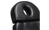 Zagłówek jest wysuwany, co pomaga dostosować sprzęt do potrzeb użytkowników o różnym wzroście, zapewniając stabilne wsparcie głowy w trakcie zabiegów. Ukryty od zaślepką otwór w zagłówku i możliwość swobodnego rozłożenia sprzętu do pozycji leżanki znacząco zwiększa jego funkcjonalność przy usługach na twarz i ciało. Pozwala to na bezproblemowe wykonywanie różnego rodzaju zabiegów, między innymi z zakresu kosmetyki, fizjoterapii czy tatuażu. Zastosowane rozwiązania znacząco poprawiają komfort użytkowania oraz ergonomię pracy.