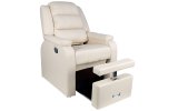 Elegancki i bardzo wygodny fotel do pedicure Hilton to bardzo wysokiej jakości fotel do pedicure obity miękką i trwałą tapicerką z eco skóry. Fotel wyposażony jest w regulację pochylenia oparcia. Fotel został wyposażony w "szufladę", która pozwala na umieszczenie miski do pedicure. Dla ułatwienia wykonywania zabiegu pedicure fotel został wyposażony w regulowany podnóżek. Tego typu fotel to nie tylko stylowy mebel, ale także bardzo komfortowe miejsce pracy.
