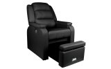 Elegancki i bardzo wygodny fotel do pedicure Hilton to bardzo wysokiej jakości fotel do pedicure obity miękką i trwałą tapicerką z eco skóry. Fotel wyposażony jest w regulację pochylenia oparcia. Fotel został wyposażony w "szufladę", która pozwala na umieszczenie miski do pedicure. Dla ułatwienia wykonywania zabiegu pedicure fotel został wyposażony w regulowany podnóżek. Tego typu fotel to nie tylko stylowy mebel, ale także bardzo komfortowe miejsce pracy.