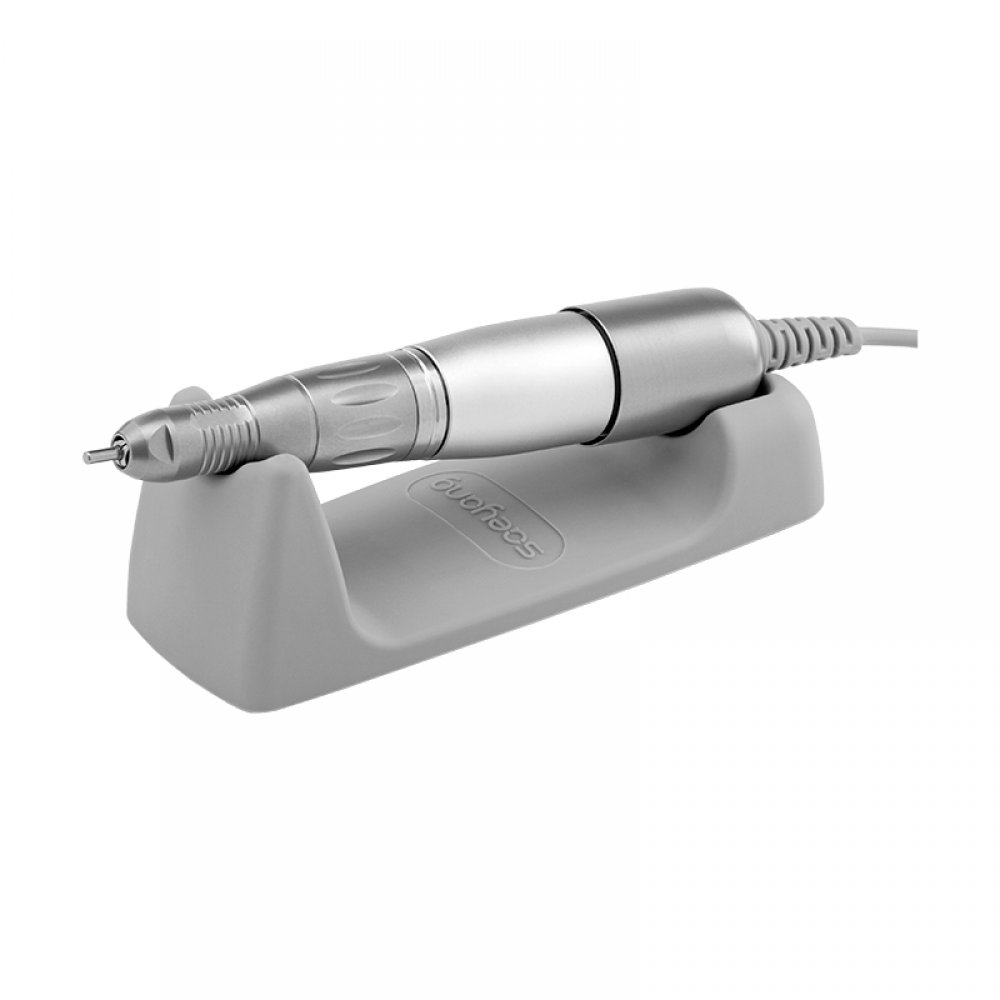 Obsługa urządzenia jest zadziwiająco prosta. Pokrętło regulujące prędkość pozwala na sprawne kontrolowanie intensywności obrotów (aż do 30 tysięcy). Cyfrowy wyświetlacz pokazuje najważniejsze informacje, takie jak prędkość czy poziom naładowania baterii. Urządzenie jest lekkie, całość zmieści się do podręcznej torebki. Z głowicą przyjemnie się pracuje, ponieważ jest smukła, a jej wibracje zostały zneutralizowane. Do zestawu dołączony jest napęd nożny, co zdecydowanie jest pomocnym rozwiązaniem. Masz do dyspozycji również podstawkę, która zabezpieczy głowicę na czas przerwy.
