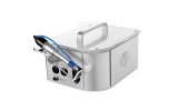 Podświetlany pojemnik na płyn ma objętość 250 ml. Bardzo łatwo go wyjmować, czyścić i napełniać. Płyn zostanie doprowadzony do węża podłączonego z drugiej strony. Spray połączony głowicą będzie łatwo dostępny podczas przeprowadzania zabiegu. Reguluj intensywność natrysku używając pokrętła. Włączaj lub wyłączaj spray przyciskiem na wyświetlaczu.