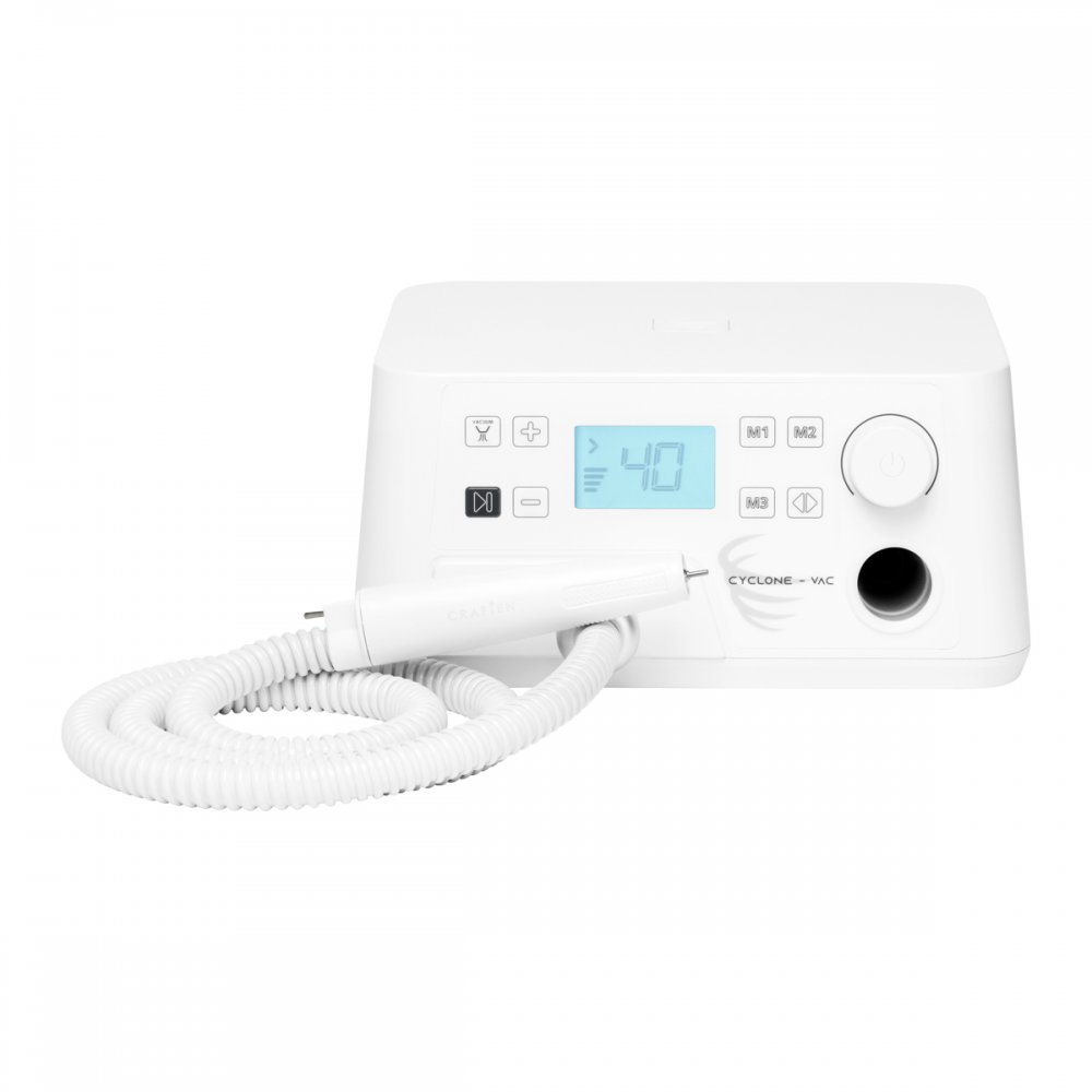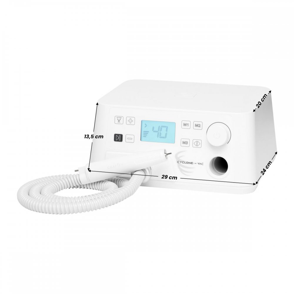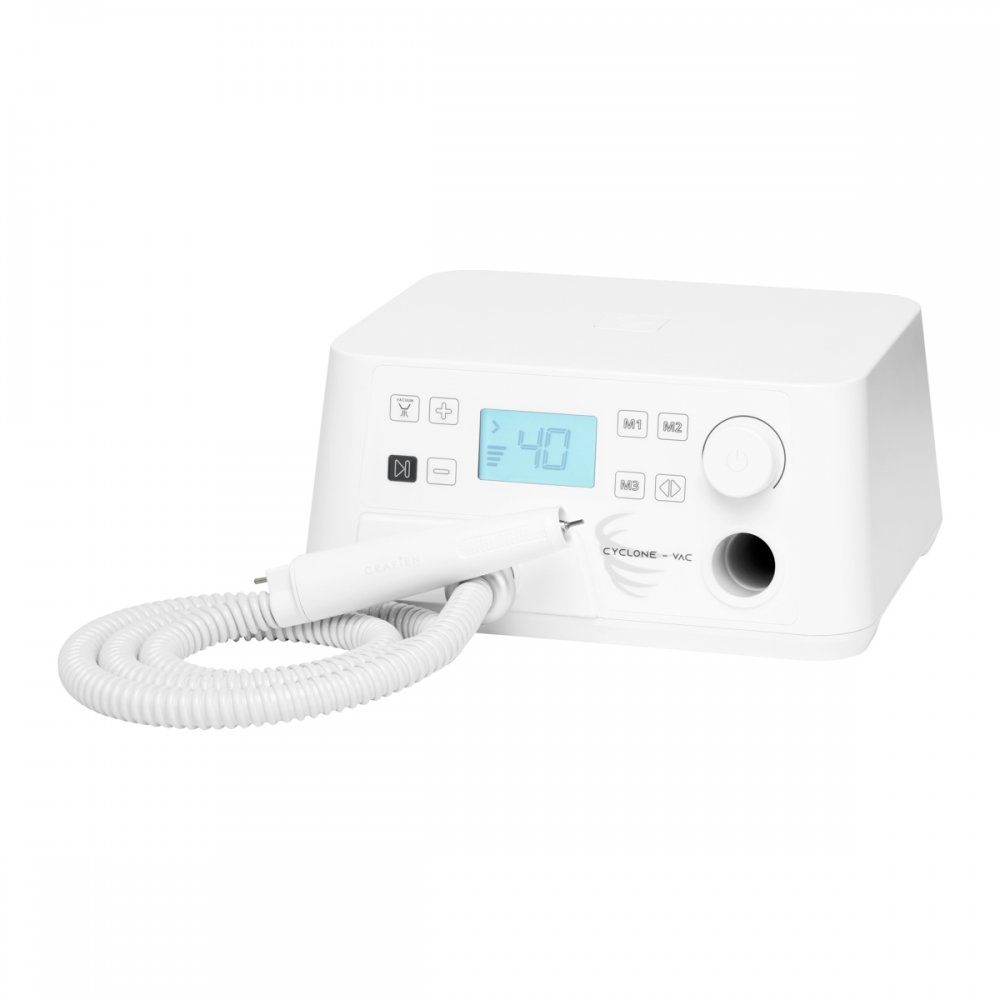 Wysokiej klasy frezarka podologiczna z pochłaniaczem Saeyang Marathon Cyclone-Vac to specjalistyczne urządzenie, które pozwala zachować wysokie standardy higieniczne w gabinecie, efektywnie chroniąc zdrowie osób wykonujących usługi oraz klientów. Profesjonalna frezarka przeznaczona jest do pedicure, zwłaszcza zabiegów leczniczych na sucho przeprowadzanych w podologii, ale sprawdzi się również w trakcie manicure. Wydajna głowica z pochłaniaczem oraz intuicyjna obsługa znacząco usprawniają pracę podologa, ułatwiając wykonywanie szerokiej gamy zabiegów.