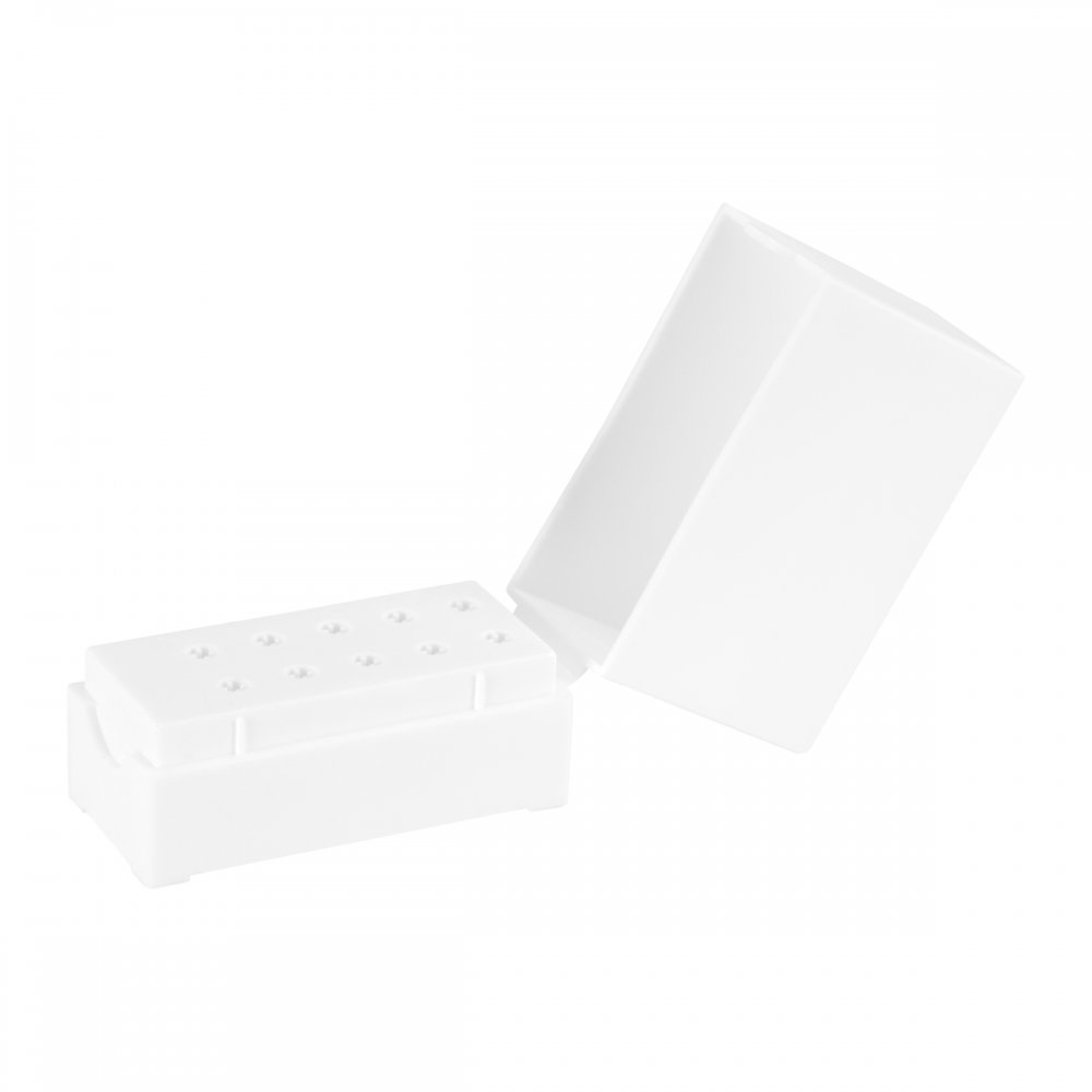 Praktyczny stojak na frezy EXO posiada 10 otworów, co ułatwia przechowywanie oraz organizację niezbędnych przy manicure frezów. Podstawka z tworzywa sztucznego wraz z przykrywką chroni przed gromadzeniem się pyłu, kurzu oraz innych zanieczyszczeń, tym samym pozwalając na zachowanie higieny pracy. Trwały i stabilny stojak pozwoli na zachowanie większego porządku oraz znacznie lepszą organizację podczas pracy z frezarką.