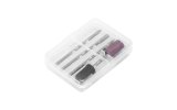 Komfortowa i efektywna praca z frezarką w dużej mierze zależy od wyboru odpowiednich frezów. Dołączony do frezarki zestaw frezów diamentowych o różnych kształtach zapewnia umożliwia sprawne wykonywanie różnorodnych zabiegów – zarówno opracowywanie skórek, przygotowanie płytki paznokcia, jak i pracę z masą żelową czy akrylową. Dobrane frezy, nośnik oraz dołączona nakładka ścierna będą odpowiednie zarówno dla użytkowników profesjonalnych, jak i początkujących.