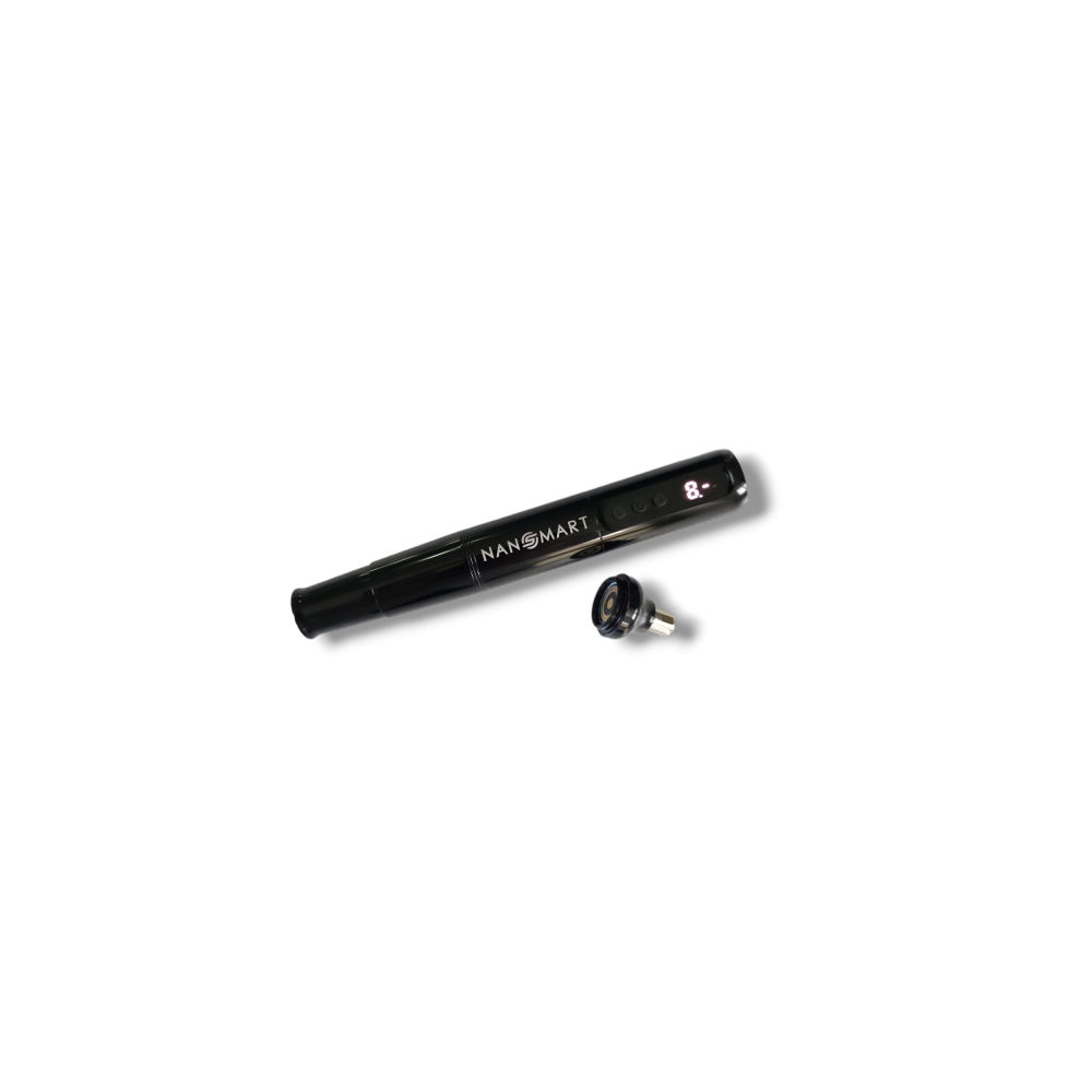 Hybrydowe bezprzewodowe urządzenie do makijażu permanentnego, które posiada akumulator oraz złączkę do zasilania sieciowego które można podłączyć do zasilacza np. Nano Power lub Nano Black