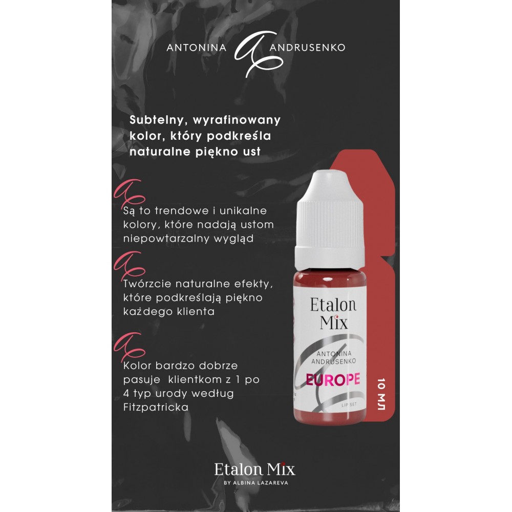 Pigment ETALON MIX do ust EUROPE by Antonina Andrusenko przeznaczony do makijażu permanentnego i tatuażu.