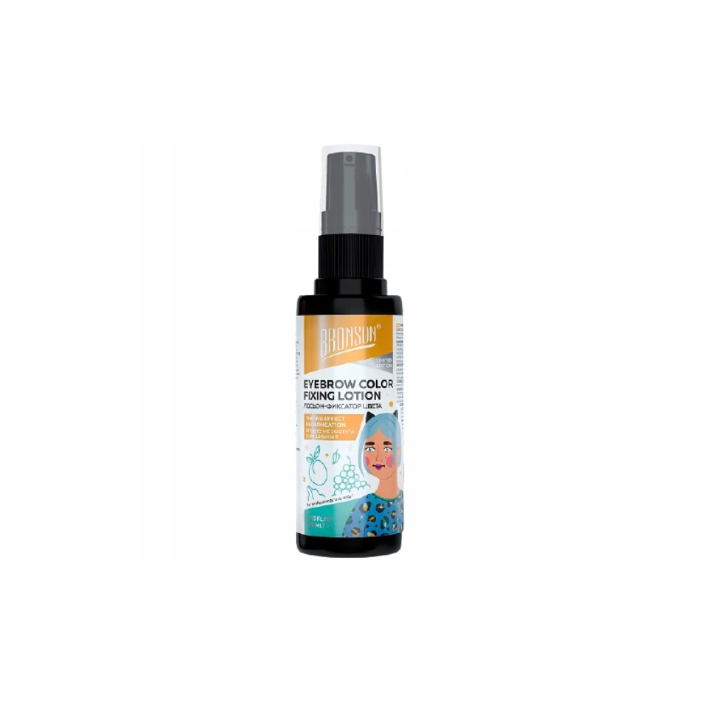 Bronsun Eyebrow color Fixing Lotion 50ml to balsam utrwalający kolor brwi polecany jest do stosowania podczas koloryzacji farbą lub henną – pomaga utrwalić kolor po zabiegu barwienia i zapewnia maksymalną trwałość barwnika, jest zalecany także do codziennej domowej pielęgnacji brwi. Nadaje się do wszystkich rodzajów farb i henny, posiada właściwości nawilżające.