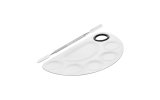 Paletka posiada 5 płytkich okrągłych wgłębień, w których można umieścić wszystkie potrzebne kolory. Środkowa część również jest wgłębiona, dzięki czemu mieszanie farb jest jeszcze łatwiejsze. Korzystanie z tego akcesorium usprawnia pracę kosmetyczki – na jednej paletce można zmieszać odpowiednie odcienie, a także trzymać produkty do oczyszczania i inne preparaty potrzebne do zabiegu. Otwór na palec sprawia, że praca w pozycji stojącej nie stwarza problemów.