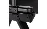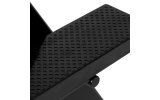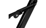 Krzesło posiada system blokady, dzięki czemu w trakcie użytkowania zapewnia stabilność. Po odblokowaniu w łatwy sposób można je złożyć, co znacznie ułatwia przechowywanie oraz transport. Minimalistyczne podłokietniki oraz podnóżek o szerokości niemal 40 cm zapewniają użytkownikowi wygodę i komfort w trakcie wykonywania makijażu czy charakteryzacji. Wraz z oparciem pozwalają one zająć odpowiednią pozycję, co ma znaczenie zwłaszcza w trakcie dłuższych zabiegów. Zastosowane rozwiązania sprawiają, że krzesło jest niezwykle praktyczne, daje mnóstwo przestrzeni do pracy osobom oferującym usługi mobilne i sprawdzi się w nawet najbardziej nietypowych warunkach.