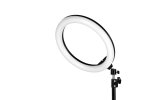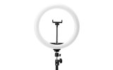 Pilot na przewodzie umożliwia skokową regulację temperatury barwowej w szerokim zakresie zimne-pośrednie-ciepłe (od 3000 do 6000 K) oraz kontrolę natężenia światła w 12 poziomach. Funkcjonalność ta zapewnia dodatkową elastyczność podczas użytkowania lampy. Montaż na solidnym statywie gwarantuje komfort pracy w salonie kosmetycznym, studiu tatuażu czy w domu. Dodatkowo wewnątrz pierścienia lampy znajduje się adapter gwintowy umożliwiający montaż elastycznego uchwytu do telefonu, który jest zawarty w zestawie i – umożliwiając rozszerzenie zacisku do maksymalnie 15 cm – pasuje do większości smartfonów dostępnych na rynku.