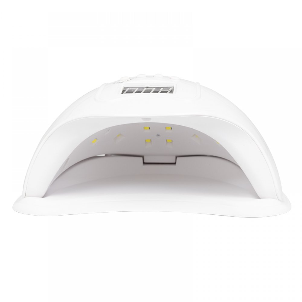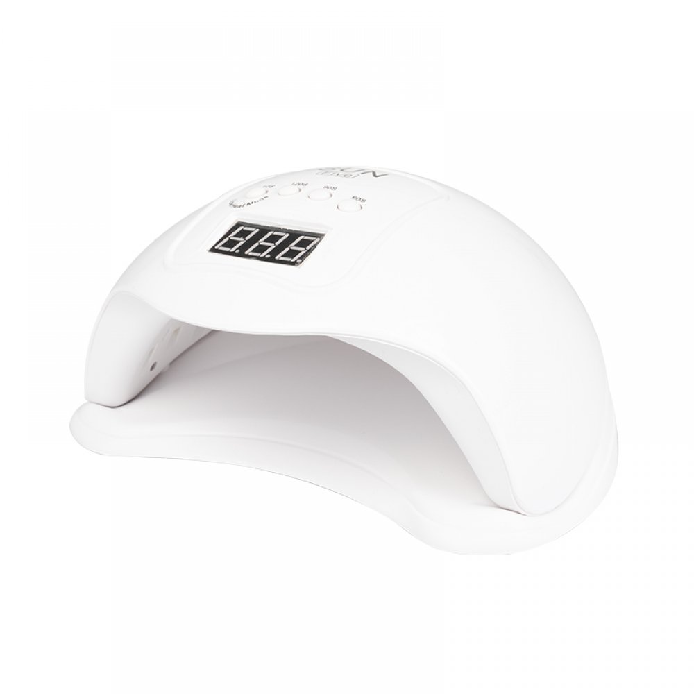Najnowszej generacji, profesjonalna lampa UV/LED, która szybko i równomiernie utwardza wszystkie żele, lakiery hybrydowe i inne preparaty światłoutwardzalne dzięki zastosowaniu technologii dual led. Emituje białe światło, które nie męczy wzroku. Lampa SUN 5 posiada energooszczędne źródło światła o dużej mocy i podwójnym zakresie fal 365nm i 405nm. Ponadto, 24 diody dają łączną moc maksymalną o wartości 48W. Lampa posiada wbudowany sensor ruchu, timer 10, 30, 60 i 99 sekund, a po uruchomieniu sensora świeci nieprzerwanie do 120 sekund. Tryb 99 sekund „Low Heat Mode” to tryb, w którym moc lampy stopniowo wzrasta co 30 sekund. Niweluje on uczucie pieczenia podczas aplikacji żeli budujących. Duży elektroniczny wyświetlacz ułatwia kontrolę czasu.