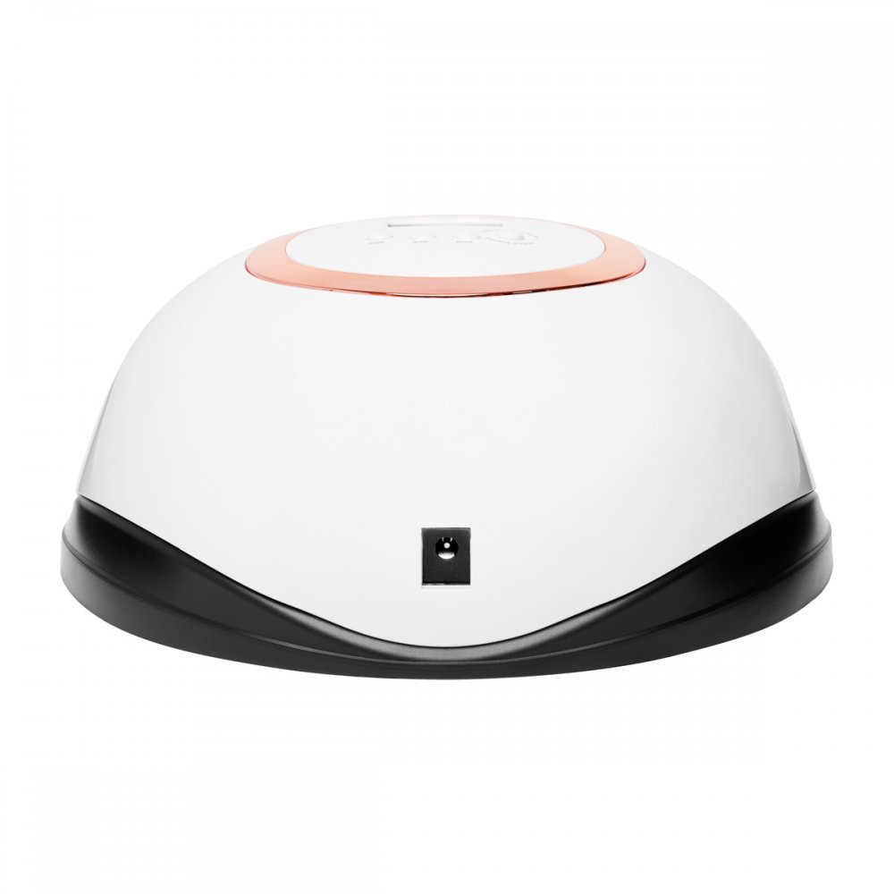 Przydatne funkcje, ergonomiczny kształt oraz klasyczna kolorystyka sprawiają, że lampa jest praktycznym, a zarazem gustownym elementem wyposażenia salonu. Ciemne wnętrze oraz barwna wstawka w postaci okręgu o polerowanym wykończeniu w odcieniach złota nadaje urządzeniu stylowy charakter. Odpowiedni rozmiar pozwala na ułożenie całej dłoni czy stopy pod lampą, co zapewnia równomierne utwardzanie stylizacji.