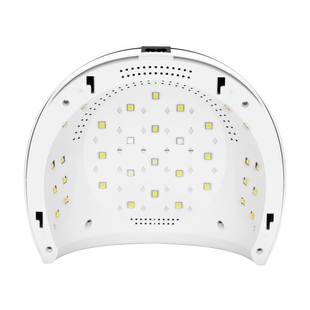 Skrupulatnie dobrane funkcje, matowe wykończenie oraz klasyczne białe odcienie obudowy sprawiają, że lampa jest gustownym, a zarazem niezwykle praktycznym elementem wyposażenia salonu. Odpowiednie wymiary pozwalają na swobodne ułożenie całej dłoni czy stopy pod lampą w trakcie wykonywania zabiegu. Zapewnia to sprawne, równomierne utwardzanie stylizacji oraz zmniejsza ryzyko wystąpienia alergii. Posiada łatwe w demontażu zdejmowane dno, co wyraźnie ułatwia układanie pod nią stopy w przypadku zabiegów pedicure czy podologicznych. Opcja ta sprawdzi się również doskonale w trakcie czyszczenia czy dezynfekcji urządzenia.
