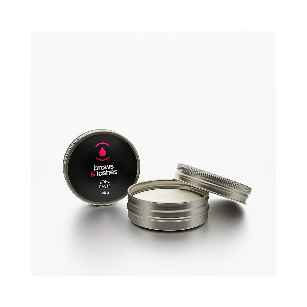 Zone Paste i brows & lashes to biała pasta do rysunku wstępnego przed farbowaniem brwi, odgranicza wyraźnie pole zabiegowe i ułatwia pracę stylisty. Niezbędna w profesjonalnym zabiegu stylizacji brwi henna pudrową lub farbką