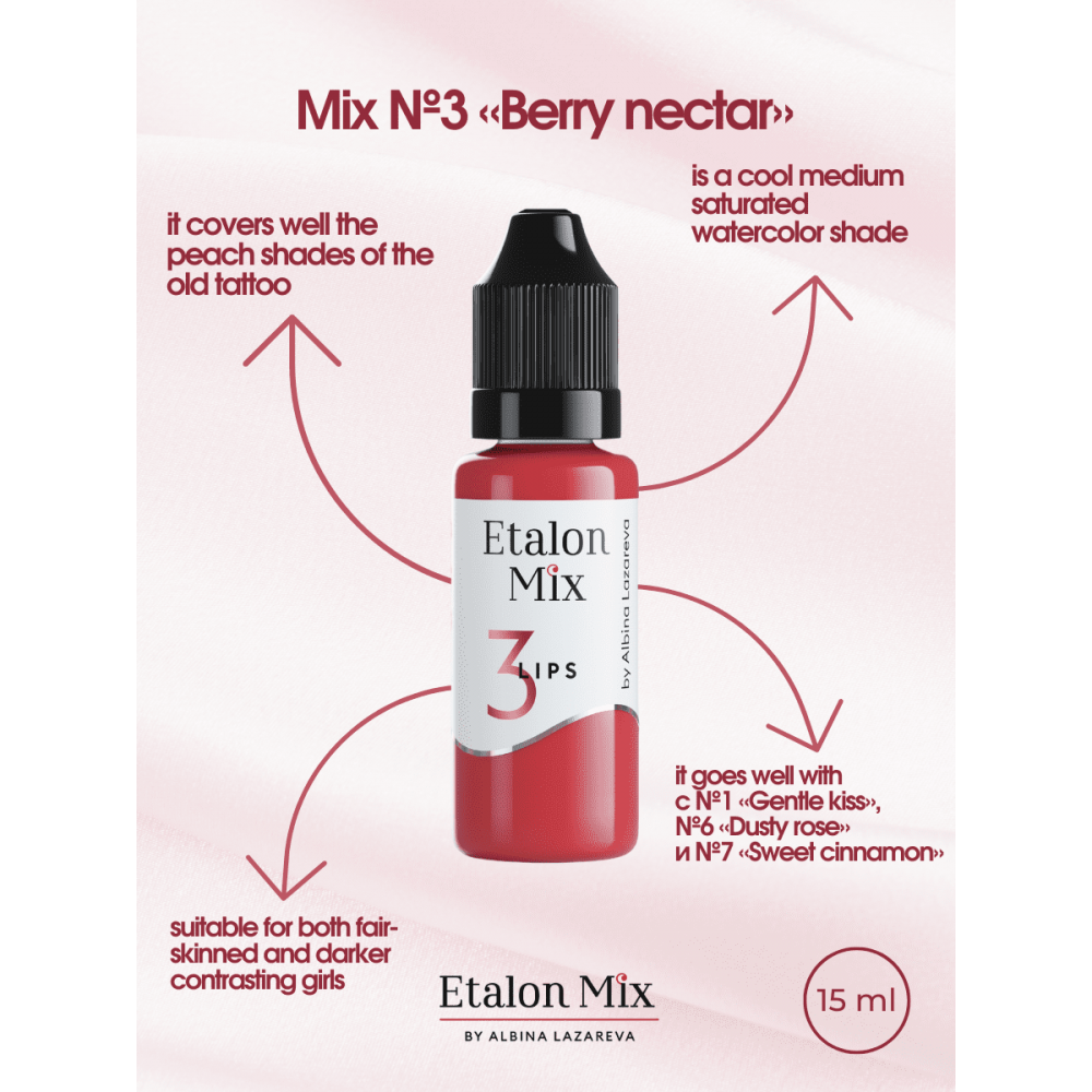 Pigment do ust Etalon Mix 3 „Nektar Jagodowy” przeznaczony do makijażu permanentnego i tatuażu.