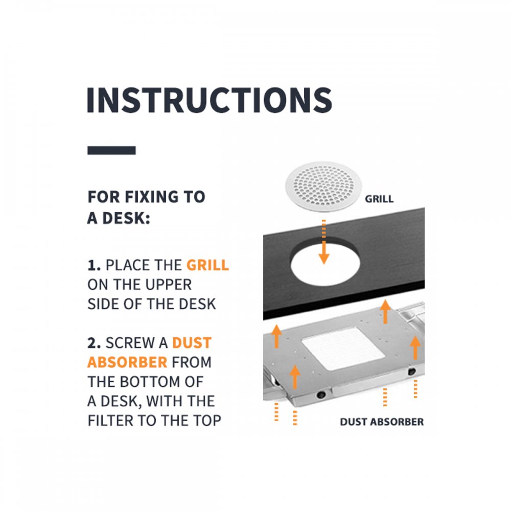 bezpośrednio do specjalnego filtra, który uniemożliwia wydostanie się go na zewnątrz. Kratka wykonana jest z wysokiej jakości metalu a kasetowy filtr do pyłu specjalnej bibuły filtracyjnej. Opcjonalnie można dokupić filtr z aktywnym węglem,który jest idealnym rozwiązaniem problemu alergenów, pyłów i drobnoustrojów