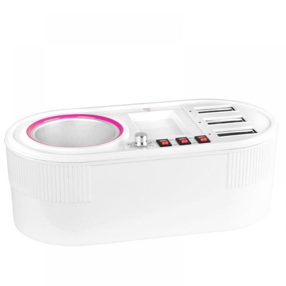 Urządzenie wielofunkcyjne do podgrzewania wkładów woskowych i puszek z woskiem do depilacji.
