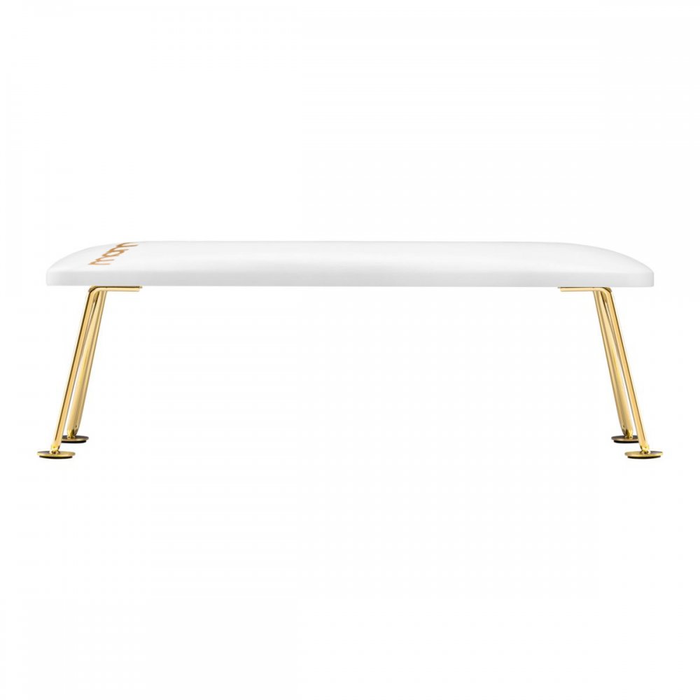 Profesjonalna podpórka do manicure 6M to klasyczna podpórka pod dłoń. Obicie wykonano z ekoskóry a nóżki z chromowanej stali w lolorze złotym. Odpowiednia wysokość podpórki zapewnia wygodną pozycję zarówno dla klienta, jak i dla stylistki. Stylistka nie garbi się i trzyma się prosto, dzięki czemu ból kręgosłupa zostanie zniwelowany.