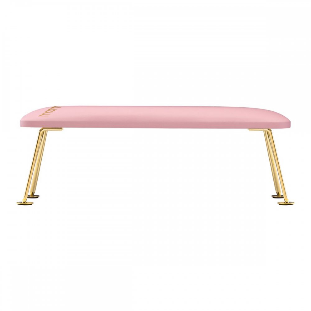 Profesjonalna podpórka do manicure 6M to klasyczna podpórka pod dłoń. Obicie wykonano z ekoskóry a nóżki z chromowanej stali w lolorze złotym. Odpowiednia wysokość podpórki zapewnia wygodną pozycję zarówno dla klienta, jak i dla stylistki. Stylistka nie garbi się i trzyma się prosto, dzięki czemu ból kręgosłupa zostanie zniwelowany.