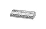 Stylowy pokrowiec w odcieniach srebra wykonany jest z błyszczącego, syntetycznego materiału i ozdobiony pikowanymi sercami. Charakteryzuje się odpornością na wilgoć, a dodatkowo nie zatrzymuje zabrudzeń, pył z piłowanych paznokci nie przyczepia się do materiału. Utrzymanie go w czystości jest niezwykle proste – wystarczy w trakcie zabiegów przetrzeć gąbką lub szmatką. Zapinany jest na zamek, dzięki czemu w razie potrzeby łatwo go zdjąć, by wymienić czy dokładniej oczyścić.