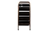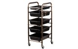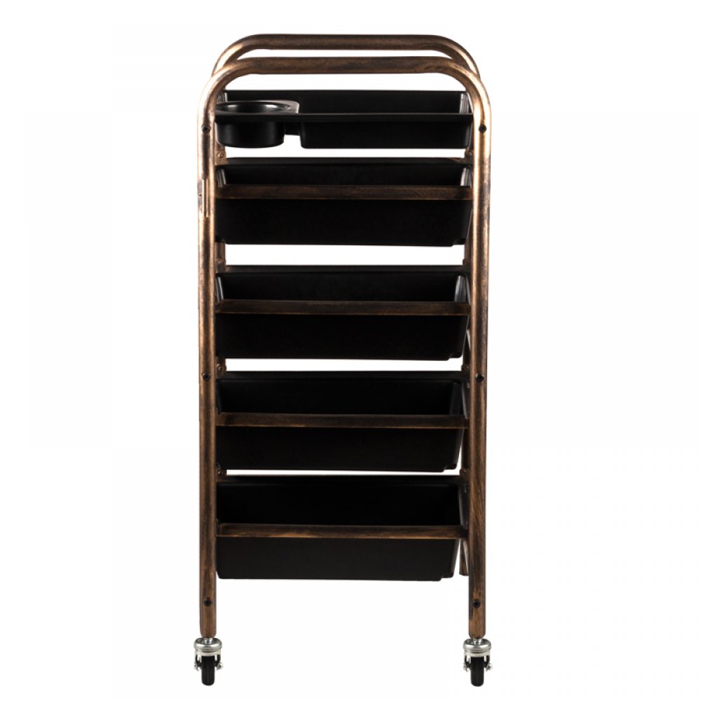 Pomocnik fryzjerski dwustronny w kolorze starego złota, posiada 4 kuwety i uchwyty na asortyment fryzjerski. Stablina konstrukcja zapewni długotrwałe użytkowanie. Stolik osadzony na gumowanych kółkach, dzięki którym narzędzia będą zawsze pod ręką.