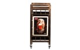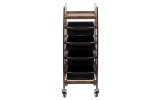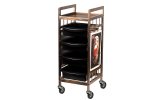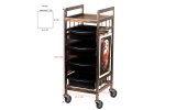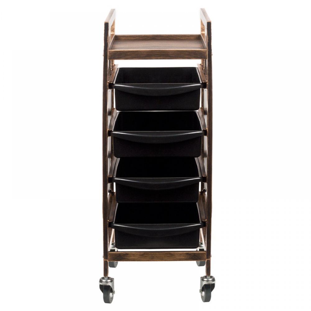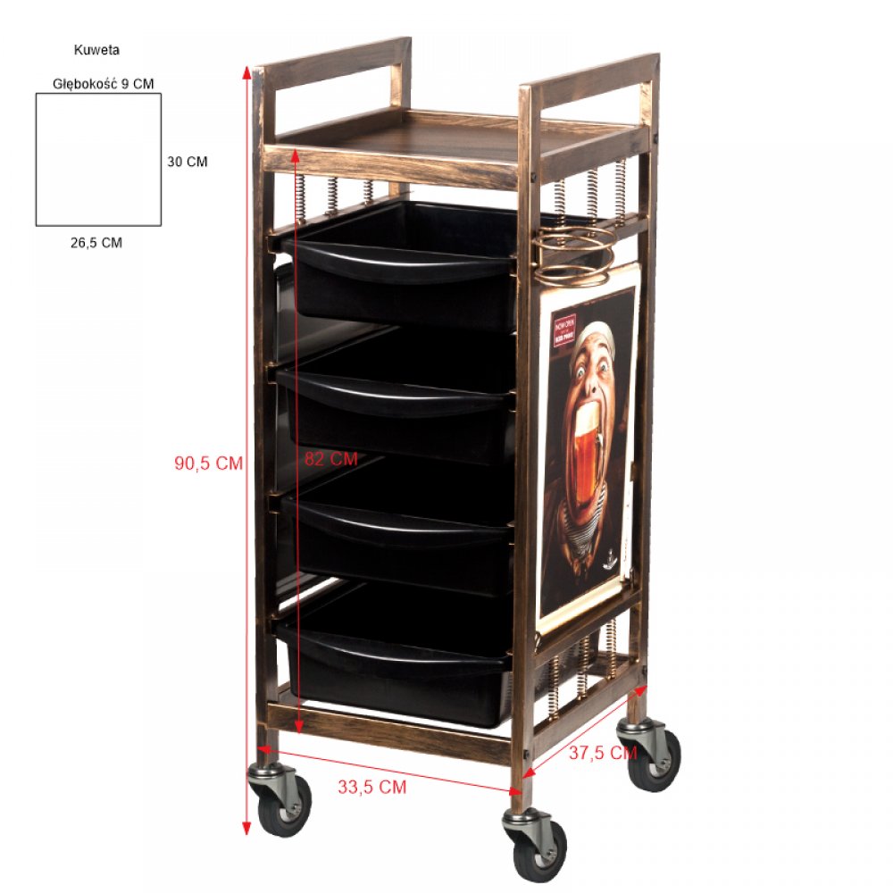 Pomocnik fryzjerski dwustronny w kolorze starego złota, posiada 4 kuwety i uchwyty na akcesoria fryzjerskie. Stablina konstrukcja zapewni długotrwałe użytkowanie. Stolik osadzony na gumowanych kółkach, dzięki którym narzędzia będą zawsze pod ręką.