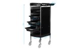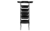 Pomocnik fryzjerski Gabbiano to wysokiej jakości mebel. Wykonany został w wytrzymałego tworzywa ABS ze stalową konstrukcją ramy, zapewniającą wysoką stabilność i wytrzymałość. Całość jest osadzona na bardzo wytrzymałych łożyskowanych, gumowych kółkach. Klasyczny kolor czerni idealnie dopasuje się do wystroju Twojego salonu!