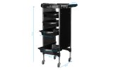 Pomocnik fryzjerski Gabbiano to wysokiej jakości mebel. Wykonany został w wytrzymałego tworzywa ABS ze stalową konstrukcją ramy, zapewniającą wysoką stabilność i wytrzymałość. Całość jest osadzona na bardzo wytrzymałych łożyskowanych, gumowych kółkach. Klasyczny kolor czerni idealnie dopasuje się do wystroju Twojego salonu!