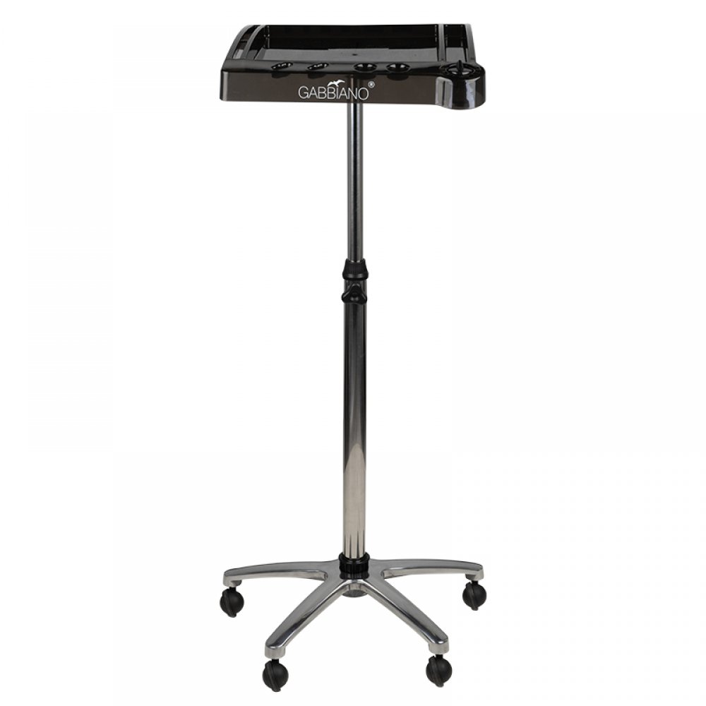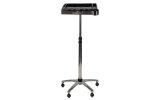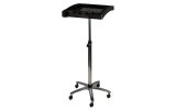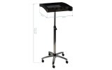 Pomocnik fryzjerski w kolorze czarnym. Stablina konstrukcja zapewni długotrwałe użytkowanie. Stolik osadzony na kółkach, dzięki którym narzędzia będą zawsze pod ręką.