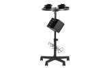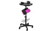 Pomocnik fryzjerski w kolorze czarnym ,posiada wiele schowków na asortyment fryzjerski. Stablina konstrukcja zapewni długotrwałe użytkowanie. Stolik osadzony na gómowanych kółkach, dzięki którym narzędzia będą zawsze pod ręką. W pomocnik wbudowany jest timer do odmierzania czasu.