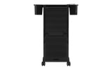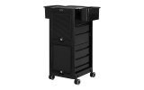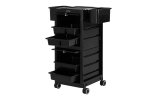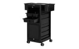 Prosta stylistyka pomocnika sprawia, że sprawdzi się on w każdym wnętrzu. Wykonany z łatwego do utrzymania w czystości, trwałego materiału mebel w odcieniach czerni znacząco usprawni pracę w każdym salonie urody. Gumowane kółka zapewniają mobilność, pozwalając na swobodne i płynne przestawianie w zależności od potrzeb – w trakcie zabiegów wokół fotela fryzjerskiego czy też odstawianie po wykonanej usłudze. W razie potrzeby mogą być również w łatwy sposób zdemontowane. Pomocnik ten sprawdzi się zwłaszcza u osób, które bardzo cenią sobie funkcjonalność.