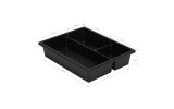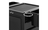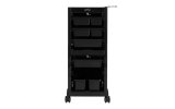 Pojemny organizer wyposażony jest w zestaw kuwet, które pomogą zadbać o porządek w miejscu pracy, posegregować odpowiednio niezbędne w pracy fryzjera przybory. W zestawie znajduje się sześć pojemników: dwa bez przegródek, dwa z przegródkami oraz dwa wąskie i głębsze. Ich układ w organizerze można dowolnie zmieniać, dopasowując go do własnych potrzeb, a znaczny wybór różnych typów szuflad pozwala na posegregowanie przyborów według uznania. Dodatkowo dwie najgłębsze kuwety można umieszczać na różnych wysokościach po bokach pomocnika, dzięki czemu ułożone w nich przybory zawsze znajdą się na odpowiednim poziomie.