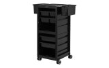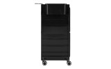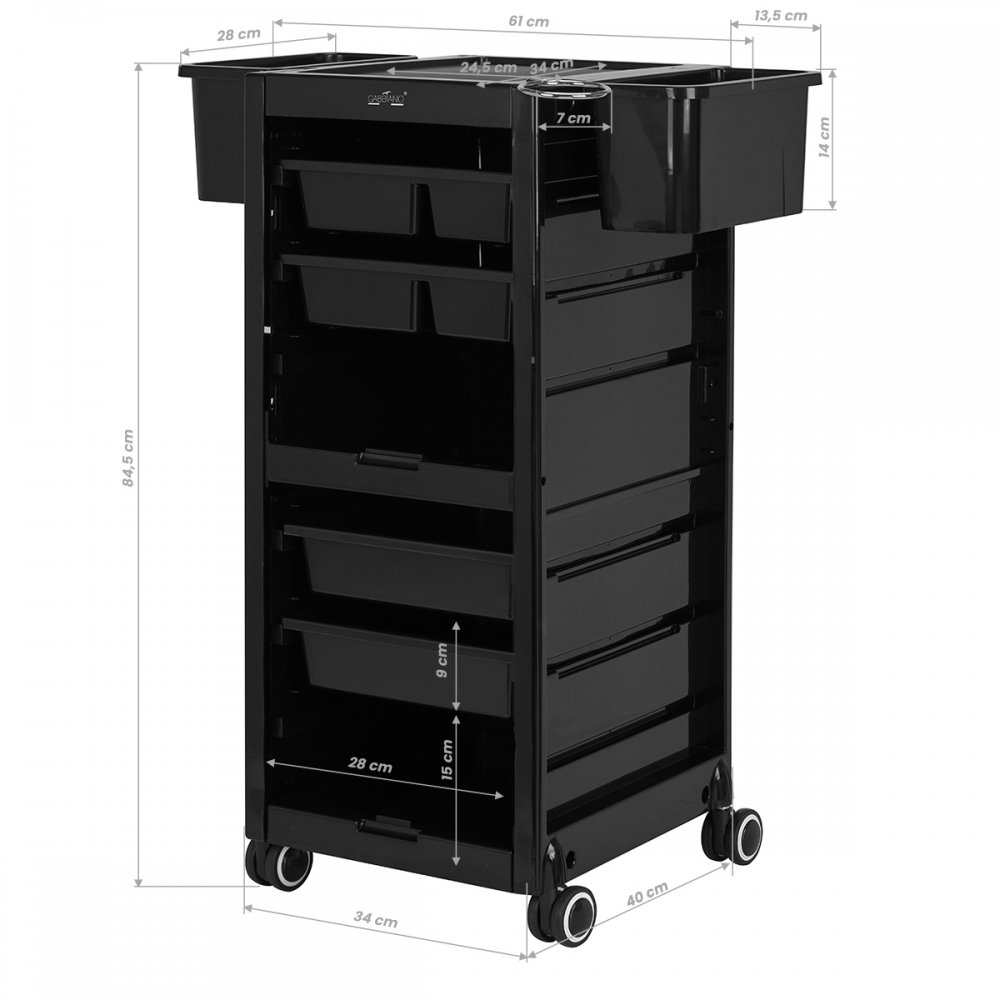 Prosta stylistyka pomocnika sprawia, że sprawdzi się on w każdym wnętrzu. Wykonany z łatwego do utrzymania w czystości, trwałego materiału mebel w odcieniach czerni znacząco usprawni pracę w każdym salonie urody. Gumowane kółka zapewniają mobilność, pozwalając na swobodne i płynne przestawianie w zależności od potrzeb – w trakcie zabiegów wokół fotela fryzjerskiego czy też odstawianie po wykonanej usłudze. W razie potrzeby mogą być również w łatwy sposób zdemontowane. Pomocnik ten sprawdzi się zwłaszcza u osób, które bardzo cenią sobie funkcjonalność.