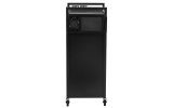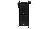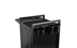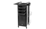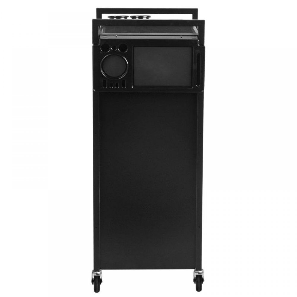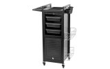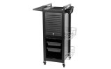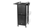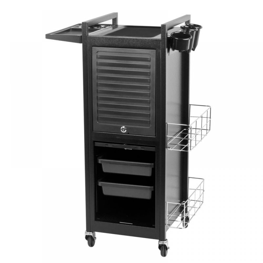 Pomocnik wykonany z bardzo mocnej stali, odporny na ciepło w 100% . Powłoka proszkowa wysokiej jakości, odporna na zarysowania i plamy od wody. Składany podajnik boczny z uchwytami na akcesoria chwyty metalowe na urządzenia. Na górnek tacy jest siliconowa mata. Wyposażony jest mocne koła, oddzielne drzwiczki zamykane na zamek do zapewnienia bezpieczeństwa i prywatności oraz chromowane kosze po obu stronach pomocnika.