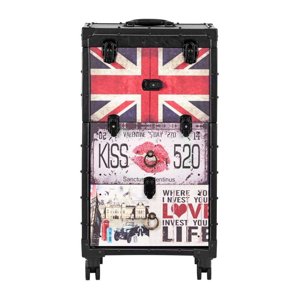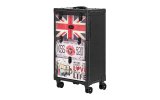 Charakterystyczna stylistyka pomocnika Gabbiano C12 to doskonałe rozwiązanie dla salonów barberskich, które cenią sobie wyjątkowy wygląd i eleganckie detale. Fronty szafek ozdobione są stylizowanymi brytyjskimi wzorami, co z pewnością podkreśli atmosferę wnętrza. Materiał imitujący skórę w odcieniach czerni oraz metalowe elementy dodają meblowi elegancji, męskiego charakteru i luksusowego wyglądu. Pomocnik ten będzie doskonałym wyborem dla osób, które cenią sobie zarówno ciekawy design, jak i funkcjonalność.